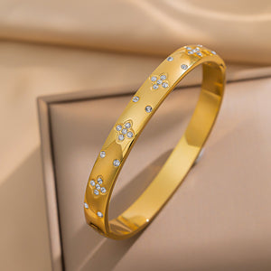 Material 304 Stainless Steel - 18K Gold plated-Zircon